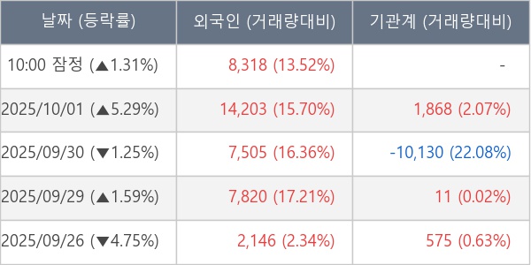 [표] 외국인ㆍ기관 순매매량 (단위 주)