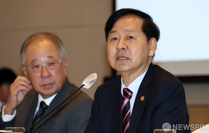 [서울=뉴스핌] 최지환 기자 = 구윤철 부총리 겸 기획재정부 장관이 2일 오전 서울 영등포구 FKI타워에서 열린 서비스산업 경쟁력 강화 TF 1차 회의에서 모두발언을 하고 있다. 2025.10.02 choipix16@newspim.com