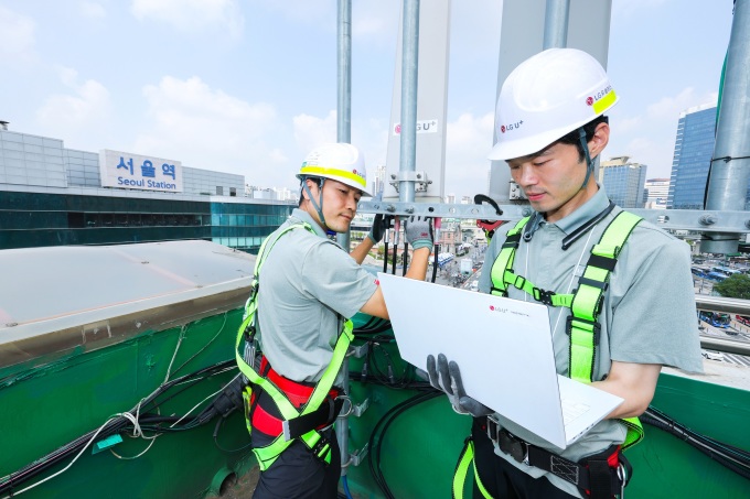 사진은 LG유플러스 임직원이 서울역 인근 네트워크 장비를 점검하고 있는 모습. [사진=LG유플러스] |