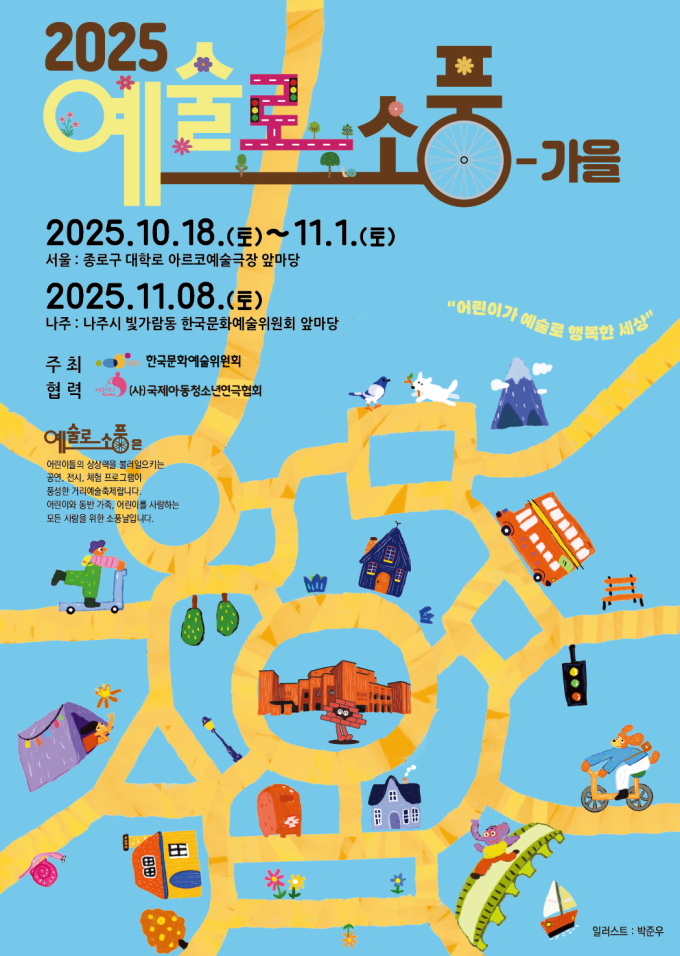 정병국 위원장은 "'예술로 소풍-가을'은 어린이와 가족이 직접 참여하는 체험프로그램을 대폭 늘리고 공연프로그램의 장르와 스타일을 다변화해 예술을 일상 속에서 즐길 수 있는 기회를 한층 확장했다"며 "앞으로도 시민이 생활 속에서 자연스럽게 예술을 경험하고 성장할 수 있는 환경을 꾸준히 넓혀가겠다"고 밝혔다.