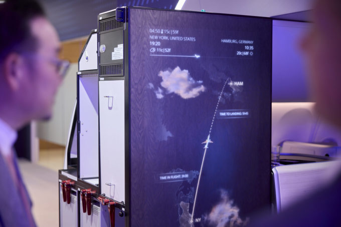 LG디스플레이가 선보인 기내용 디스플레이. 주변 인테리어와 유사한 디자인으로 평상시에는 눈에 띄지 않다가 사용자가 필요할 때 기능을 제공한다. [사진=LG디스플레이]