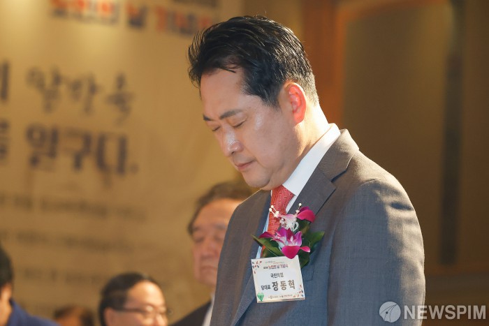 [서울=뉴스핌] 류기찬 기자 = 장동혁 국민의힘 당대표가 2일 서울 중구 소공로 롯데호텔 크리스탈볼룸에서 열린 '제29회 노인의 날 기념식'에서 묵념을 하고 있다. 2025.10.02 ryuchan0925@newspim.com |