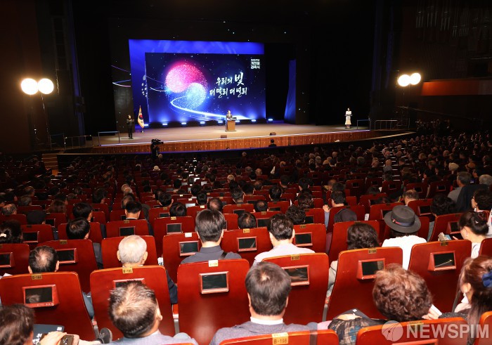 [서울=뉴스핌] 정일구 기자 = 김민석 국무총리가 3일 오전 서울 종로구 세종문화회관에서 열린 제4357주년 개천절 경축식에서 경축사를 하고 있다. 2025.10.03 mironj19@newspim.com