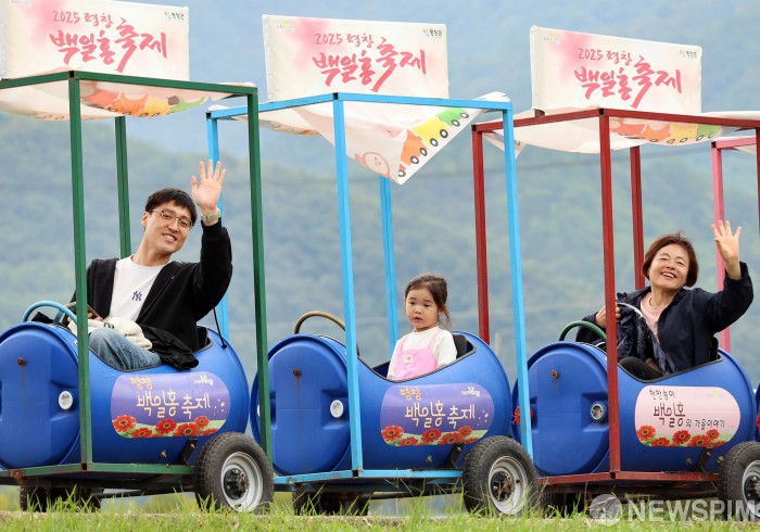 [서울=뉴스핌] 양윤모 기자 = 3일 오후 추석연휴를 맞아 평창읍 평창강 일원에서 열린 '2025 평창 백일홍축제'를 찾은 방문객들이 축제장을 운행하는 깡통열차를 즐기고 있다. '가을향기, 백일홍으로 물들다'를 주제로 열리는 올 해 축제는 백일홍, 코스모스 등 다양한 볼거리 및 체험 프로그램으로 12일까지 펼쳐진다. 이와 함께 축제 기간 평창읍 기관과 주민이 참여하는 야시장과 먹거리 존이 운영되며, 연계 행사로 평창읍 전통시장에서는 달빛장터, 노람들에서는 한가위 평창 에코라이트쇼가 개최된다. [사진= 평창군청] 2025.10.03 yym58@newspim.com