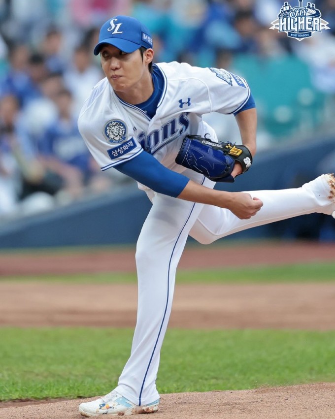 삼성 선발 원태인이 7일 KBO 포스트시즌 와일드카드(WC) 결정전 2차전에서 투구하고 있다. [사진=삼성] |