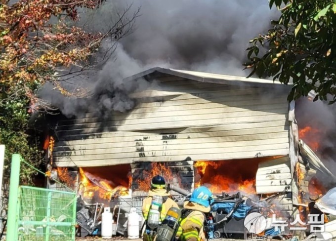 [과천=뉴스핌] 박승봉 기자 = 8일 오전 경기 과천시의 한 공구기계 보관창고에서 불이 나 건물과 차량이 전소됐다. 인명 피해는 없는 것으로 확인됐다.
