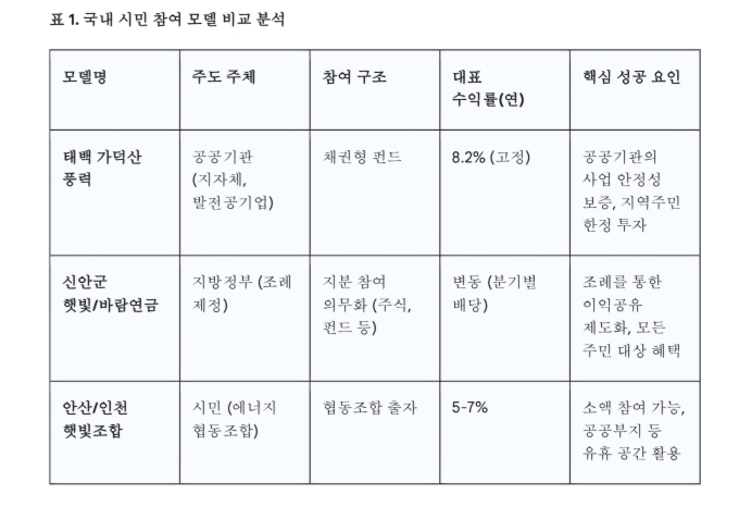 공공기관이 사업 안정성을 보증하고 시민에게 연 8.2% 고수익을 안겨준 '태백 가덕산 풍력 발전 펀드', 조례를 제정해 개발 이익을 모든 주민에게 '햇빛 연금'으로 지급하는 '신안군' 사례가 대표격이다.
