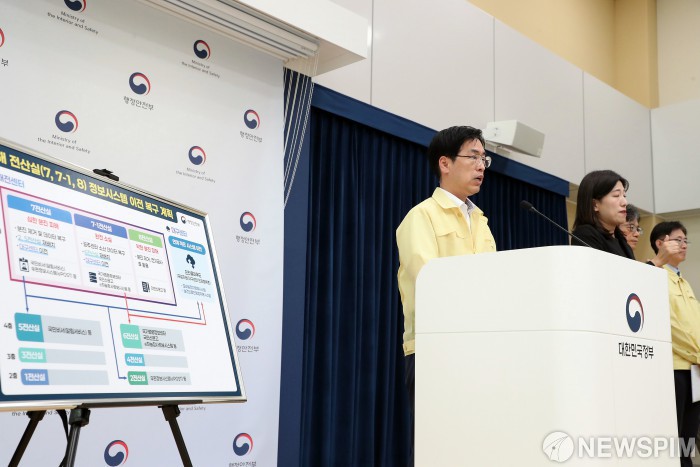 '국정자원 화재' 1등급 복구율 62.5% [서울=뉴스핌] 고다연 기자 = 국가정보자원관리원(국정자원) 화재로 마비된 정부 전산시스템이 709개로 정정됐다. 화재로 멈춘 일부 시스템은 대구센터나 대전센터 내 타 전산실로 이전해 복구에 속도를 높인다는 계획이다.  김민재 중앙재난안전대책본부(중대본) 제1차장은 9일 브리핑을 통해 화재 관련 상황과 복구 진행현황을 발표했다. [서울=뉴스핌] 윤호중 중앙재난안전대책본부장(행정안전부 장관)이 9일 오전 정부서울청사에서 국가정보자원관리원 행정정보시스템 화재 관련 중대본 회의를 주재하고 모두 발언을 하고 있다. [사진=행정안전부] 2025.10.09 photo@newspim.com 브리핑에 따르면 국가정보자원관리원 통합운영관리시스템인 엔탑스(nTOPS)의 데이터가 복구돼 대전센터의 전체 시스템 목록을 확인할 수 있었다. 이후 부처와 확인 과정을 거쳐 시스템 목록을 709개로 확정했다. 기존에 정부가 공지한 647개에서 62개가 추가된 것이다.  이는 우체국금융, 공직자통합메일과 같은 일부 시스템이 기능별로 세분화돼 시스템 수가 증가했고, 온나라문서 시스템은 기관별로 있던 목록이 정부업무관리시스템으로 통합되는 등 목록 변화에 따른 것이다. 현재 목록의 등급별 시스템 수는 1등급 40개, 2등급 68개, 3등급 261개, 4등급 340개다. 화재로 장애가 발생한 정부 전산시스템은 이날 12시 기준으로 193개(27.2%) 시스템이 복구됐다. 1등급 시스템 40개 중에서는 25개(62.5%)가 복구돼 운영 중이다. 또 이달 말까지 도입 예정이던 장비를 연휴 중 도입해 현재까지 서버 90식, 네트워크 장비 64식 등 198식의 전산장비를 신규로 도입했다. 중대본은 장비 설치가 완료되는 15일 이후부터는 복구되는 시스템이 빠르게 늘어날 것으로 예상된다고 전했다.  중대본에 따르면 분진 및 화재 피해를 입은 5층 전산실의 시스템은 소관 부처와의 협의 및 세부 검토를 거쳐 대구센터로 이전하거나 대전센터 내 타 전산실로 이전해 복구할 예정이다. 김 차장은 "5층의 시스템 전체를 대구센터로 이전하는 것보다 대전센터에서 신속히 장비를 수급하여 복구하는 것이 효율적일 것이라는 기술적 판단을 반영했다"고 밝혔다. 대전센터는 5전산실 및 6전산실에 신규장비를 설치해 시스템을 복구하고, 대구센터 이전 시스템은 민간 클라우드사와 소관부처 간의 협의가 완료되는 대로 조속히 이전할 계획이다. gdy10@newspim.com 2025-10-09 14:43