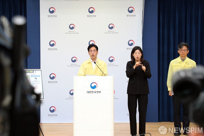 [서울=뉴스핌] 김민재 중앙재난안전대책본부 제1차장이 9일 오후 세종시 도움로 정부세종청사 중앙동 브리핑실에서 국가정보자원관리원 행정정보시스템 화재 관련 중대본 브리핑을 하고 있다. [사진=행정안전부] 2025.10.09 photo@newspim.com