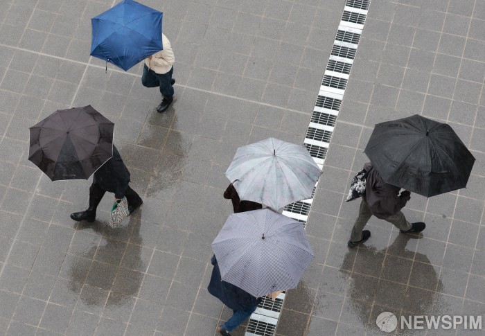 기상청에 따르면 이날 전국이 대체로 흐리지만 전남권과 경남권, 제주도는 대체로 맑겠다. 인천·경기북부와 강원중·북부는 비가 시작되겠다. 오전부터 서울·경기남부와 충남북부에, 오후부터는 강원남부와 충북북부에 가끔 비가 오겠다.