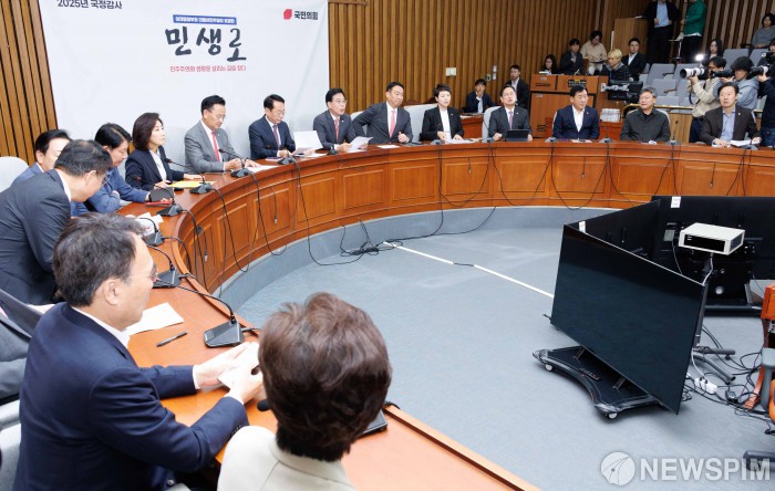 [서울=뉴스핌] 윤창빈 기자 = 송언석 국민의힘 원내대표가 10일 오전 서울 여의도 국회에서 열린 국정감사 대책회의에서 모두발언을 하고 있다. 2025.10.10 pangbin@newspim.com