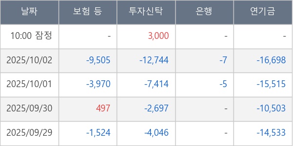 [표] 주요 기관별 순매매량 (단위 주)