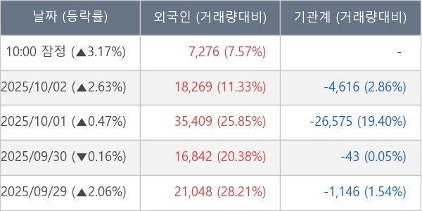 [장중수급포착] 삼화콘덴서, 외국인 6일 연속 순매수행진... 주가 +3.17%