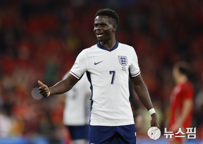 [런던 로이터=뉴스핌] 손지호 기자 = 잉글랜드 부카요 사카가 10일(한국시간) 영국 런던의 웸블리 스타디움에서 열린 웨일스와 평가전에 출전했다. 2025.10.10 thswlgh50@newspim.com |