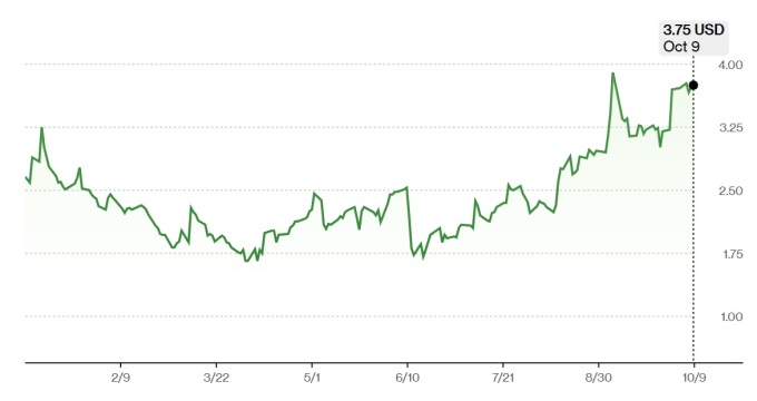 누베이션 바이오 주가는 10월9일(현지시각) 3.75달러에 거래를 종료해 2025년 초 이후 약 45% 급등했다. 특히 지난 6월17일 1.71달러에서 두 배 이상 치솟았다. 지난 5년 사이 65% 떨어졌던 주가는 최근 1년 사이 약 70% 상승하며 강한 반전을 연출했다.