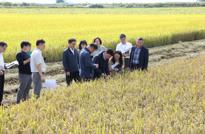 이 청장은 이날 전북특별자치도 김제시 부량면 일대 벼 재배지를 찾았다. 현장에서 이 청장은 수확을 앞둔 벼 품질과 수량을 지키기 위한 세심한 관리를 강조하고, 논물 완전 빼기와 적기 수확을 당부했다.