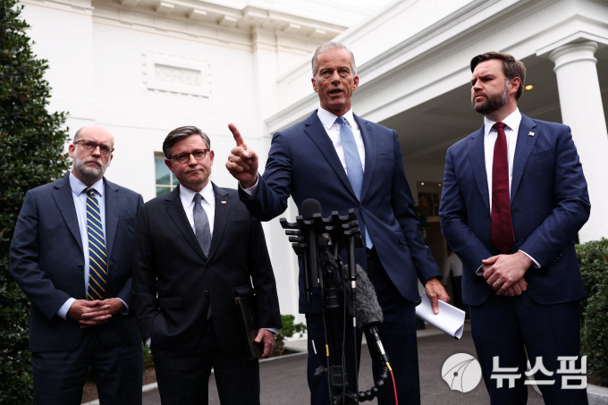 러셀 보트(사진 왼쪽) 백악관 예산관리국(OMB) 국장이 2025년 9월29일 백악관에서 기자회견을 하고 있다. [사진=로이터 뉴스핌] |