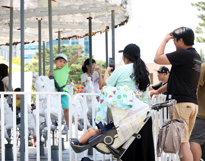 '2025 대전 서구 아트페스티벌' 축제장을 찾은 가족들이 사진을 찍고 있다. [사진=대전 서구] 2025.10.12 jongwon3454@newspim.com