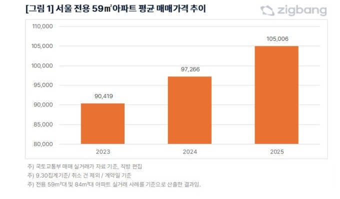 직방 관계자는 "전용 59㎡는 자금 여건과 가구 구조 변화 등을 반영해 수요가 빠르게 늘고 있다"며 "두 면적대는 각각의 수요 기반을 바탕으로 서울 아파트 시장의 가격 흐름을 가늠하는 핵심 기준으로 자리 잡고 있다"고 분석했다.