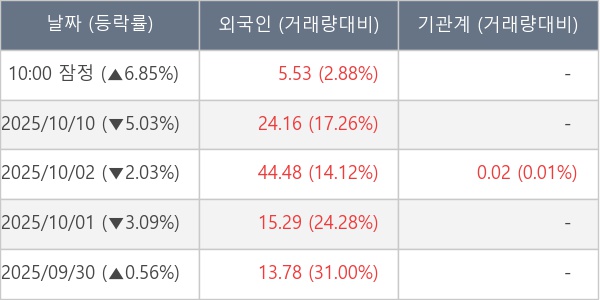 [표] 외국인ㆍ기관 순매매량 (단위 만주)