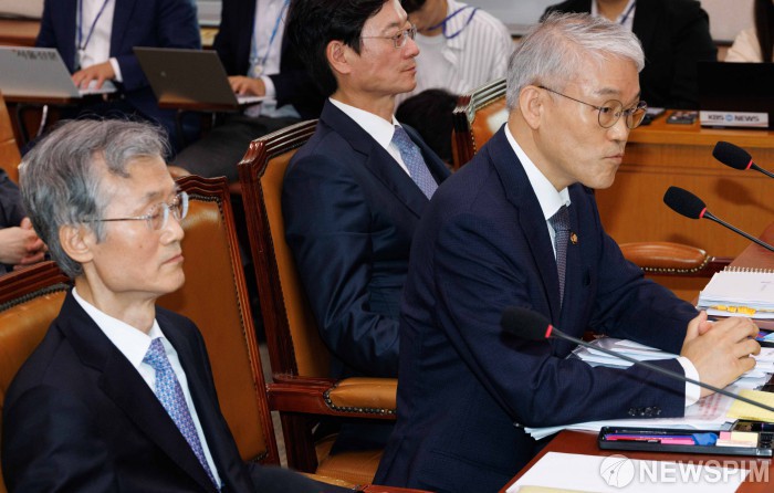 [서울=뉴스핌] 윤창빈 기자 = 천대엽 법원행정처장이 13일 오전 서울 여의도 국회에서 열린 법제사법위원회의 대법원 등에 대한 국정감사에서 의원 질문에 답변하고 있다. 2025.10.13 pangbin@newspim.com