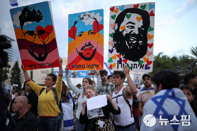 13일(현지시간) 하마스에 억류된 인질들 인도를 기다리는 이스라엘 시민들. [사진=로이터 뉴스핌] |