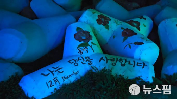 [동해=뉴스핌] 이형섭 기자 = LED 조형 산책로 '리드미컬 게이트' 옆 테트라포트에는 1월부터 13월까지 추억을 담아낸 사랑 이야기가 방문객의 눈길을 끌고 있다.2025.10.13 onemoregive@newspim.com |