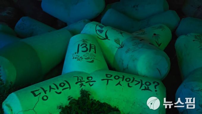 [동해=뉴스핌] 이형섭 기자 = LED 조형 산책로 '리드미컬 게이트' 옆 테트라포트에는 1월부터 13월까지 추억을 담아낸 사랑 이야기가 방문객의 눈길을 끌고 있다. 2025.10.13 onemoregive@newspim.com |