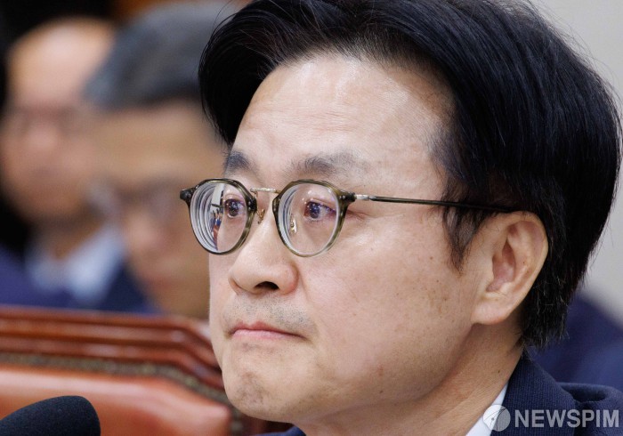 [서울=뉴스핌] 윤창빈 기자 = 김정관 산업통상부 장관이 13일 오후 서울 여의도 국회에서 열린 산업통상자원중소벤처기업위원회의 산업통상자원부 등에 대한 국정감사에서 의원 질문을 듣고 있다. 2025.10.13 pangbin@newspim.com