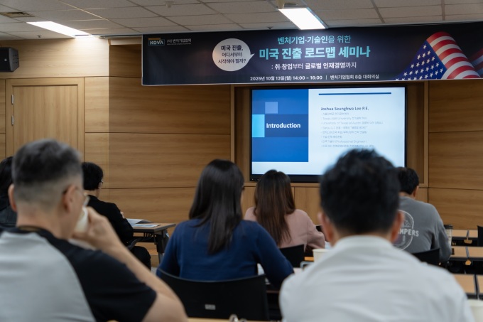 [서울=뉴스핌] 이석훈 기자 = 벤처기업협회는 미국 진출을 준비하는 벤처·스타트업 및 기술인을 대상으로 '미국 진출 로드맵 세미나'를 개최했다고 13일 밝혔다.