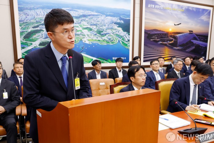 [서울=뉴스핌] 류기찬 기자 = 김원철 서희건설 대표가 13일 오후 서울 여의도 국회에서 열린 '2025년 국토교통부 등에 대한 국정감사'에서 질의에 답하고 있다. 2025.10.13 ryuchan0925@newspim.com