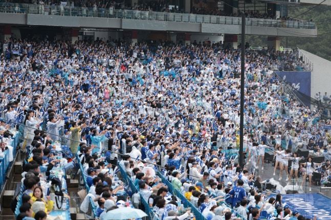 [서울=뉴스핌] 대구 삼성 라이온즈 파크에서 응원하는 팬들. [사진 = 삼성] 2025.10.13 wcn05002@newspim.com |