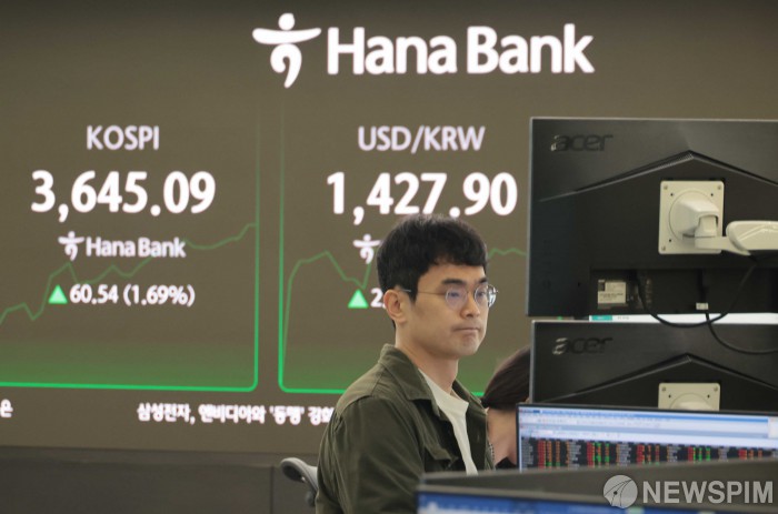 [서울=뉴스핌] 이길동 기자 = 삼성전자 호실적·美기술주 훈풍에 코스피가 3600 재돌파한 가운데 14일 오전 서울 중구 하나은행 딜링룸에 코스피-코스닥 지수 및 달러/원 환율이 표시되어 있다. 이날 코스피는 전 거래일보다 19.57p(0.55%) 오른 3604.12에 코스닥 지수는 전 거래일보다 4.88p(0.57%) 오른 865.37에 거래를 시작했다. 서울 외환시장에서 달러/원 환율은 전장보다0.7원 오른 1426.5원원에 개장했다.2025.10.14gdlee@newspim.com