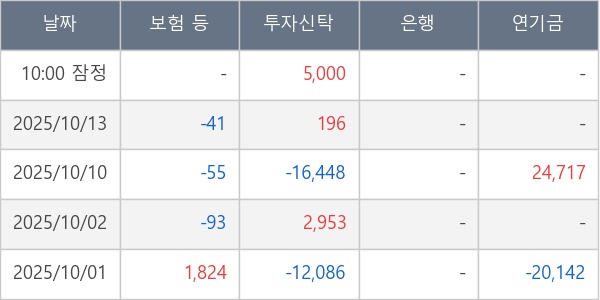 [표] 주요 기관별 순매매량 (단위 주)