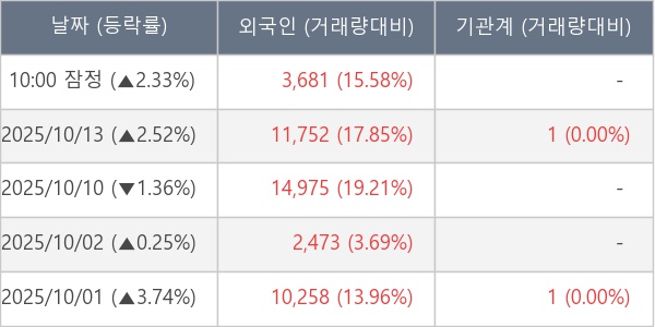 [표] 외국인ㆍ기관 순매매량 (단위 주)