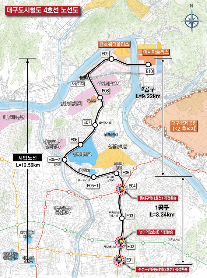 [대구=뉴스핌] 김용락 기자 = 대구교통공사는 대구 동북부 지역의 도시철도 사각지대 해소와 주민 교통편의 증진 및 대중교통 활성화를 위해 추진 중인 도시철도 4호선 건설사업에 대해 오는 30일부터 31일까지 이틀간 주민설명회를 개최한다고 14일 밝혔다.