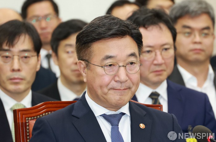 [서울=뉴스핌] 김학선 기자 = 윤호중 행정안전부 장관이 14일 서울 여의도 국회에서 열린 행정안전위원회의 행정안전부 등에 대한 국정감사에서 굳은 표정을 하고 있다. 2025.10.14 yooksa@newspim.com