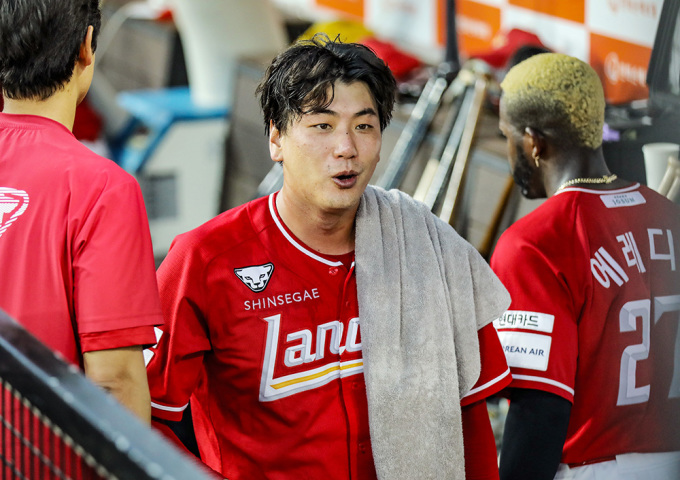 [서울=뉴스핌] SSG의 선발 김광현이 지난 7월 26일 대전 한화와의 경기에서 6이닝 2실점을 기록한 뒤 더그아웃으로 내려와 휴식을 취하고 있다. [사진 = SSG] 2025.07.26 wcn05002@newspim.com