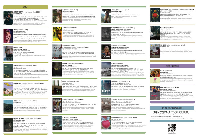올해 영화제에는 173개국에서 총 2184편이 접수돼 역대 최고 경쟁률을 기록했다. 예비 심사를 거쳐 18개국 24편이 최종 상영작으로 선정돼 산골 마을에서 세계 각국의 다채로운 영화를 감상할 수 있다.