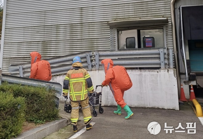 [오산=뉴스핌] 박승봉 기자 = 14일 오후 3시 30분께 경기 오산시 부산동의 한 물류창고 1층 냉동기계에서 암모니아 가스가 누출돼 근로자 6명이 어지럼증과 구토 등을 호소했다.