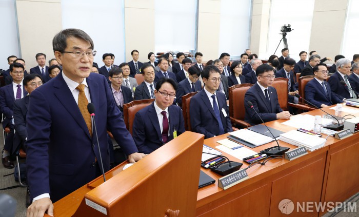 [서울=뉴스핌] 정일구 기자 = 노태악 중앙선거관리위원회 위원장이 15일 오전 서울 여의도 국회 행정안전위원회에서 열린 중앙선거관리위원회 등에 대한 국정감사에서 의원 질의에 답하고 있다. 2025.10.15 mironj19@newspim.com