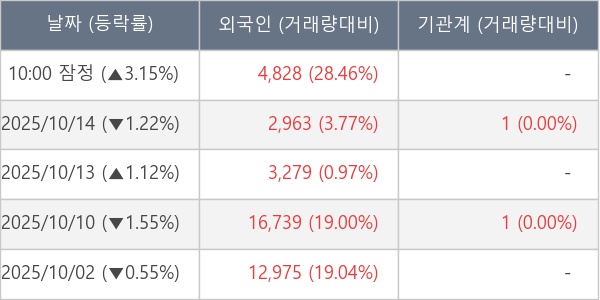 [표] 외국인ㆍ기관 순매매량 (단위 주)