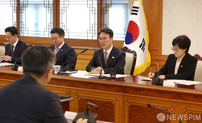 [서울=뉴스핌] 이길동 기자 =김민석 국무총리가 15일 오전 서울청사에서 "치안 안전 관계 장관회의"를 열고 있다. 조현 외교부장관 윤호중 행정안전부 장관 원민경 성평등가족부 장관 등이 참석했다. 2025.10.15 gdlee@newspim.com