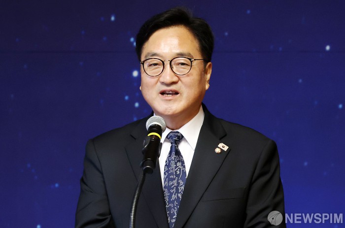 [서울=뉴스핌] 정일구 기자 = 우원식 국회의장이 15일 오전 서울 여의도 국회 사랑재에서 열린 국회 사회적 대화 공동 선언식에서 인사말을 하고 있다. 2025.10.15 mironj19@newspim.com