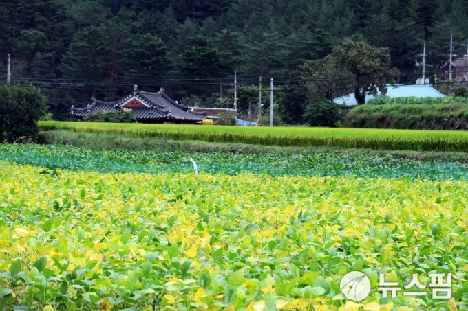 [울진=뉴스핌] 남효선 기자 = 가을장마 속 익어가는 콩밭. 2025.10.15 nulcheon@newspim.com