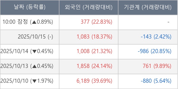 [표] 외국인ㆍ기관 순매매량 (단위 주)