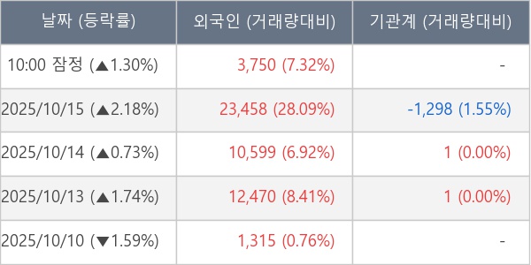 [표] 외국인ㆍ기관 순매매량 (단위 주)