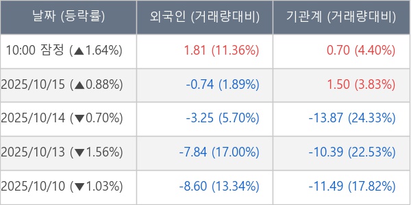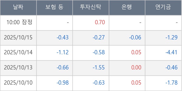 [표] 주요 기관별 순매매량 (단위 만주)