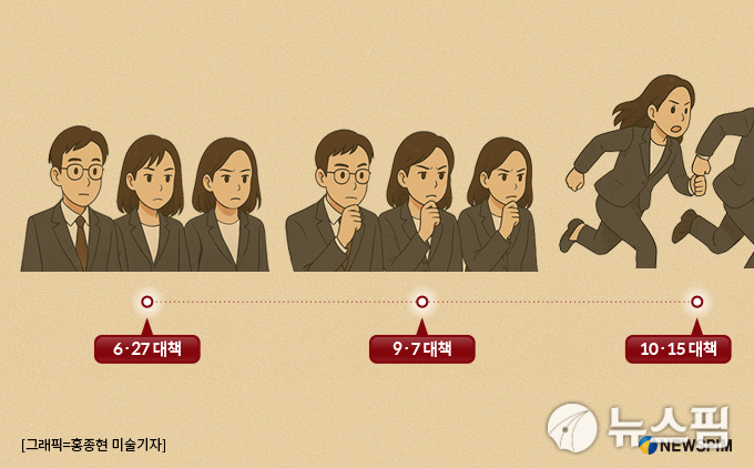 [서울=뉴스핌] 최현민 기자 = 이재명 정부가 출범 4개월 만에 세 번째 부동산 대책을 내놓으면서 시장이 다시 술렁이고 있다. 규제 강도는 한층 높아졌지만 잦은 대책 발표로 인해 집값 상승으로 이어졌던 과거 사례가 반복되며 매수 기회를 놓칠 수 있다는 불안 심리가 중저가 주택을 중심으로 한 실수요의 매수 움직임을 부추기고 있는 모양새다.