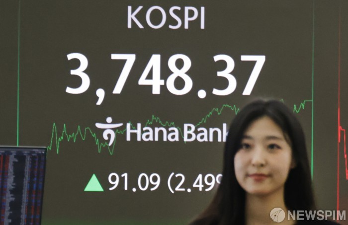 [서울=뉴스핌] 양윤모 기자 = 한미 무역협상의 최종 타결이 가시권에 들어온 가운데, 16일 오후 코스피가 전장 종가보다 91.09 포인트(2.49%) 상승하며 3748.37로, 코스닥은 0.69 포인트(0.08%) 상승한 865.41로 장을 마감한 가운데, 서울 중구 하나은행 딜링룸에서 직원들이 업무를 보고 있다. 서울외환시장에서 달러/원 환율은 전장 대비 3.50원 하락한 1417.80원에 거래를 마감했다. 2025.10.16 yym58@newspim.com